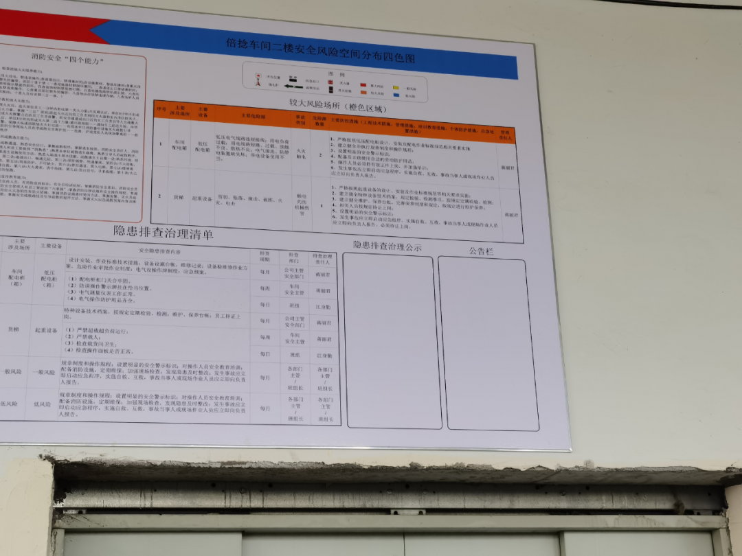 △企業(yè)一樓紡織車間風(fēng)險管控四色圖上關(guān)于隱患排查公告欄無通報內(nèi)容